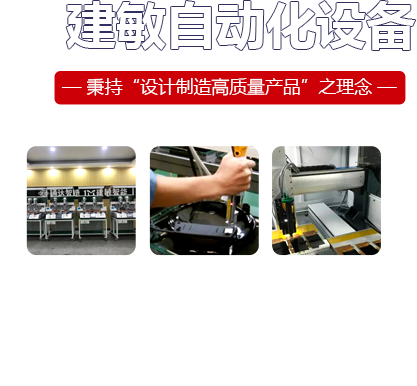 東莞市建敏自動化設備有限公司,成立于2011年,是一家集規劃、設計、研制、生產和銷售整廠自動化設備于一體的專業公司。產品主要有:全自動螺絲機、平臺式螺絲機、手持 式螺絲機、手提式螺絲機、螺絲機供料器、非標螺絲機、點膠機、焊錫機等型的非標自動化設備。秉持“設計制造”之理念,不斷完善,堅持以高質量的運作、高質量的產品、精益求 精的精神服務于客戶。與客戶建立忠實的合作伙伴關系,共同發展壯大......